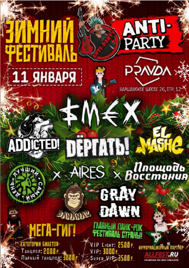 Добрый день, АнтиPartyйцы! Анонсирован один из Хэдлайнеров Зелёной Сцены и всего Зимнего Фестиваля «ANTI-PARTY-2026» — им оказалась Питерская группа «RAVANNA!» ⚡⚡ Билеты до повышения стоимости здесь — https://moscow.qtickets.events/192434-zimniy-festival-anti-party-2026